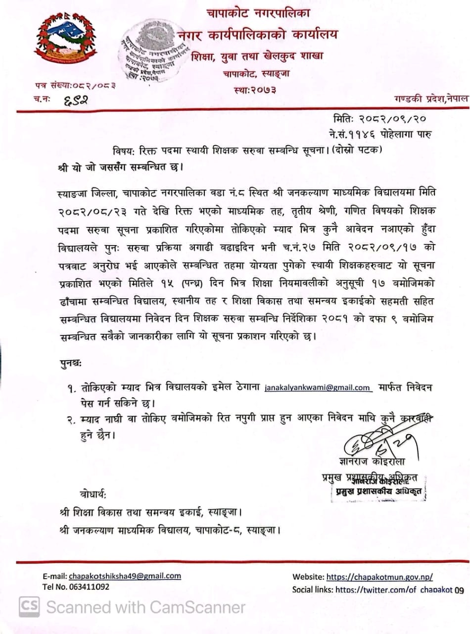 रिक्त पदमा स्थायी शिक्षक सरुवा सम्बन्धि सूचना l ( दोस्रो पटक प्रकाशित)